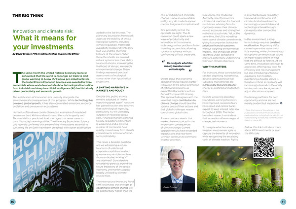To navigate what lies ahead, investors must remain agile to capture the benefits of innovation while reconciling the escalating costs of climate inaction. Agility is essential because regulatory frameworks continue to shift, climate shocks have become increasingly unpredictable and technological breakthroughs can rapidly alter competitive dynamics.