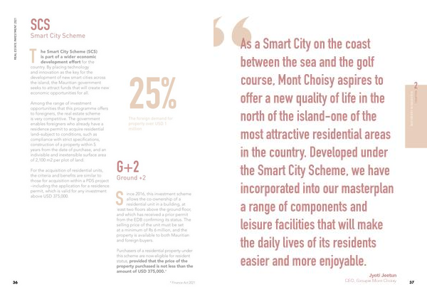 WHY INVEST IN MAURITIUS most attractive residential areas in the country . Developed under the Smart City Scheme , we have incorporated into our masterplan a range of components and leisure facilities that will make the daily lives of its residents easier and more enjoyable .