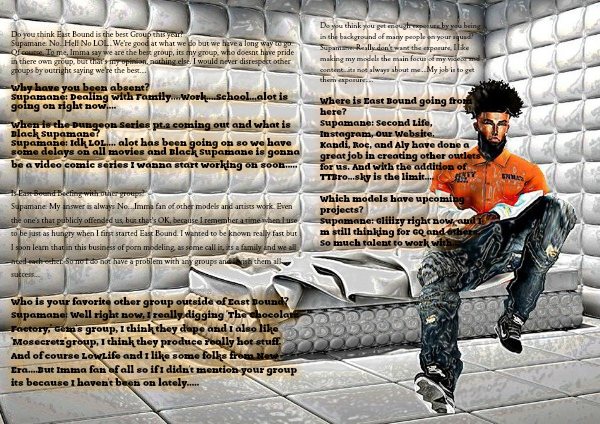 Supamane: My answer is always No....Imma fan of other models and artists work. Even the one's that publicly offended us, but that's OK, because I remember a time when I use to be just as hungry when I first started East Bound. I wanted to be known really fast but I soon learn that in this business of porn modeling, as some call it, its a family and we all need each other. So no I do not have a problem with any groups and I wish them all success....