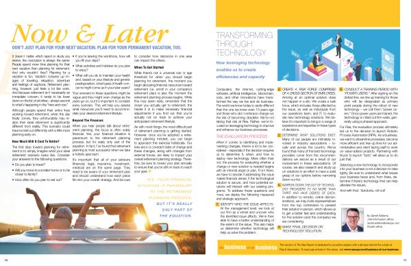 3 . DETERMINE WHAT SOLUTIONS EXIST . Many of our people are intimately involved in industry associations – locally and across the country . We ’ ve found that many of the best technology providers come from the recommendations we secure as a result of our involvement in these associations . Of course , we also research and study up on solutions in an effort to have a solid grasp of our options before narrowing down our list .