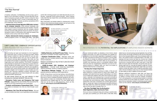 Telecommuting can open your business to a lot of opportunities , particularly when it comes to recruiting top talent . Rather than having to settle for a less-than-perfect fit , you can possibly be more selective about who you hire for certain positions without worrying about geography . But while you may be excited at the prospect of expanding your talent pool , don ’ t forget about your current workforce . The COVID-19 pandemic has presented an opportunity for employers to review their employee handbook and safety policies . How ? Mainly to ensure that they are current and updated to reflect the new regulations . Consistent and current policies assist with administration and ultimately mitigate risk for lawsuits . It also provides your employees with resources regarding company information and expectations , especially as we move forward with new safety policies and PPE requirements .