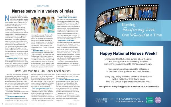 CELEBRATE NURSES Nurses serve in a variety of roles
