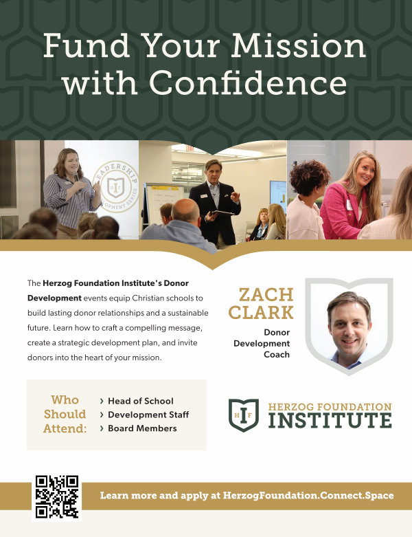 The Herzog Foundation Institute ' s Donor Development events equip Christian schools to build lasting donor relationships and a sustainable future. Learn how to craft a compelling message, create a strategic development plan, and invite donors into the heart of your mission.