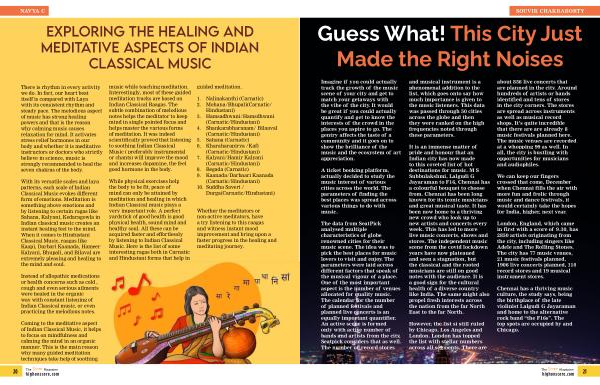It is an immense matter of pride and honour that an Indian city has now made to this coveted list of hot destinations for music . M S Subbulakshmi , Lalgudi G Jayaraman to F16 , Chennai has a colourful bouquet to choose from . Chennai has been long known for its iconic musicians and great musical taste . It has been now home to a thriving new crowd who look up to new artists and concerts every week . This has led to more live music concerts , shows and stores . The independent music scene from the covid lockdown years have now plateaued and seen a stagnation , but the classical and the rooted musicians are still on good notes with the audience . It is a good sign for the cultural health of a diverse country like India . The same might also propel fresh interests across the nation from the far North East to the far North .