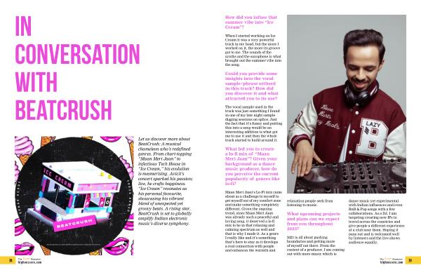 Let us discover more about BeatCrush : A musical chameleon who ’ s redefined genres . From chart-topping “ Maan Meri Jaan ” to infectious Tech House in “ Ice Cream ,” his evolution is mesmerising . Avicii ’ s concert sparked his passion ; live , he crafts happiness . “ Ice Cream ” resonates as his personal favourite , showcasing his vibrant blend of unexpected yet groovy beats . A rising star , BeatCrush is set to globally amplify Indian electronic music ’ s diverse symphony .