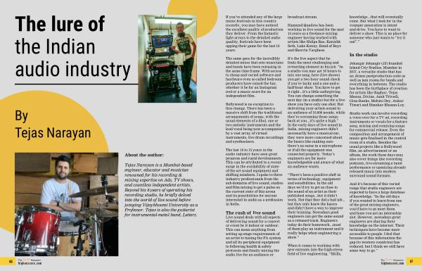 The last 10 to 15 years in the audio industry have seen great progress and rapid developments . This can be attributed to a recent surge in the availability of stateof-the-art sound equipment and shifting mindsets . I spoke to three industry professionals from the sub-domains of live sound , studios and film mixing to get a pulse on the current state of this arena and its possibilities for anyone interested in audio as a profession in India .