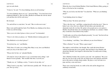 " Have you to do what I please or have you not?" he demanded. " I have to do what you please, sir," Martha faltered, turning quite red. " Has Medlock to do what I please?" " Everybody has, sir," said Martha.