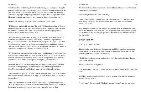 " Tell Colin that I can ' t come and see him yet," she said to Martha. " I ' m very busy in the garden."
