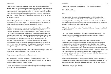 He was not on his sofa when she went into his room. He was lying flat on his back in bed and he did not turn his head toward her as she came in. This was a bad beginning and Mary marched up to him with her stiff manner.