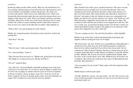 " Are you going to be my servant?" Mary asked, still in her imperious little Indian way.