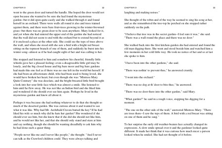 Perhaps it was because she had nothing whatever to do that she thought so much of the deserted garden. She was curious about it and wanted to see what it was like. Why had Mr. Archibald Craven buried the key? If he had liked his wife so much why did he hate her garden? She wondered if she should ever see him, but she knew that if she did she should not like him, and he would not like her, and that she should only stand and stare at him and say nothing, though she should be wanting dreadfully to ask him why he had done such a queer thing.