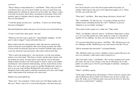 " This is such a big lonely place," she said slowly, as if she were turning matters over in her mind. " The house is lonely, and the park is lonely, and the gardens are lonely. So many places seem shut up. I never did many things in India, but there were more people to look at--natives and soldiers marching by--and sometimes bands playing, and my Ayah told me stories. There is no one to talk to here except you and Ben Weatherstaff. And you have to do your work and Ben Weatherstaff won ' t speak to me often. I thought if I had a little spade I could dig somewhere as he does, and I might make a little garden if he would give me some seeds."