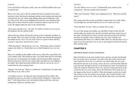 It was in that strange and sudden way that Mary found out that she had neither father nor mother left; that they had died and been carried away in the night, and that the few native servants who had not died also had left the house as quickly as they could get out of it, none of them even remembering that there was a Missie Sahib. That was why the place was so quiet. It was true that there was no one in the bungalow but herself and the little rustling snake.