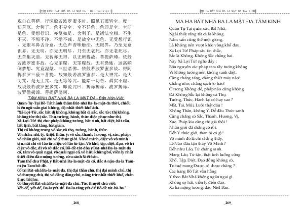 TÂM KINH BÁT NHÃ BA LA MẬT ĐA - Bản Hán-Việt: