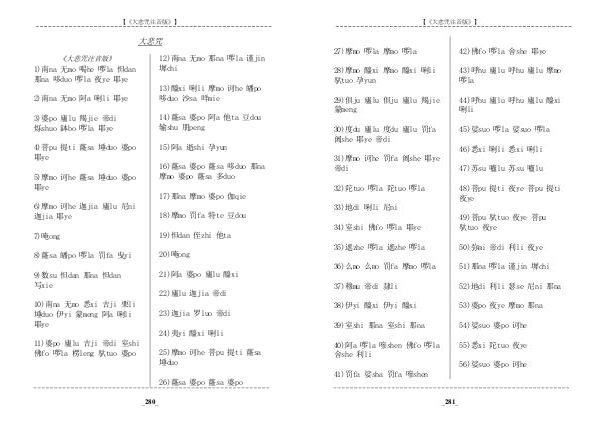 36)么mo 么mo 罚fa 摩mo 啰la 51)那na 啰la 谨jin 墀chi