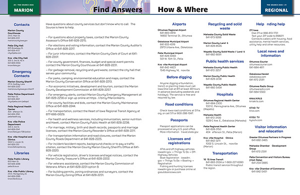 – For county government, finances, budget and special event permits contact the Marion County Courthouse at 641-828-2231.