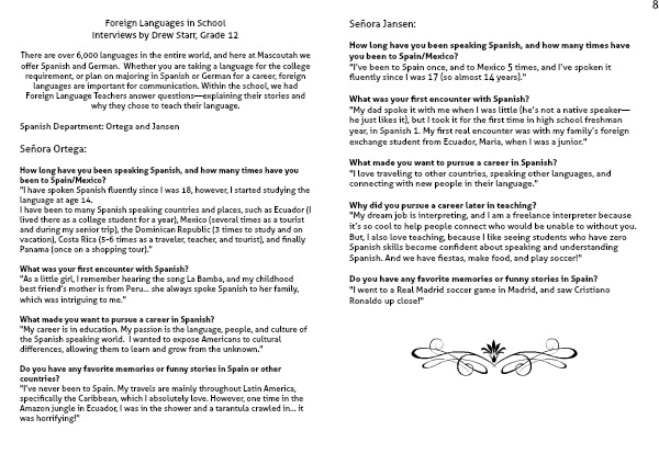 There are over 6,000 languages in the entire world, and here at Mascoutah we offer Spanish and German. Whether you are taking a language for the college requirement, or plan on majoring in Spanish or German for a career, foreign languages are important for communication. Within the school, we had Foreign Language Teachers answer questions—explaining their stories and why they chose to teach their language.