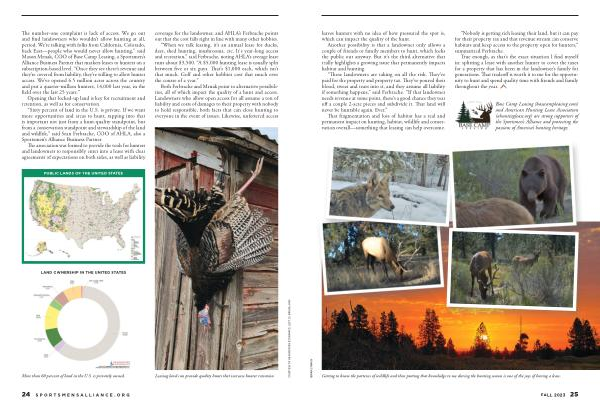 “ Sixty percent of land in the U . S . is private . If we want more opportunities and areas to hunt , tapping into that is important not just from a hunt-quality standpoint , but from a conservation standpoint and stewardship of the land and wildlife ,” said Sean Ferbrache , COO of AHLA , also a Sportsmen ’ s Alliance Business Partner .