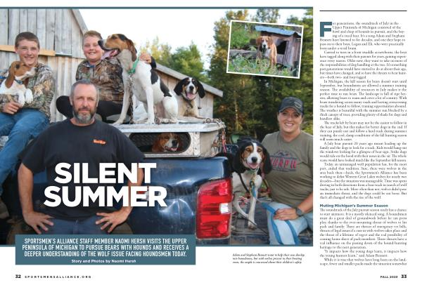SPORTSMEN ’ S ALLIANCE STAFF MEMBER NAOMI HERSH VISITS THE UPPER PENINSULA OF MICHIGAN TO PURSUE BEARS WITH HOUNDS AND RECEIVES A DEEPER UNDERSTANDING OF THE WOLF ISSUE FACING HOUNDSMEN TODAY .