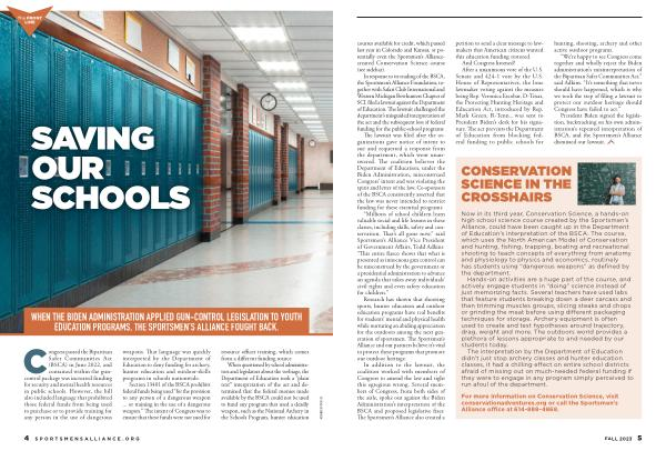 In response to its reading of the BSCA , the Sportsmen ’ s Alliance Foundation , together with Safari Club International and Western Michigan Bowhunters Chapter of SCI , filed a lawsuit against the Department of Education . The lawsuit challenged the department ’ s misguided interpretation of the act and the subsequent loss of federal funding for the public-school programs .