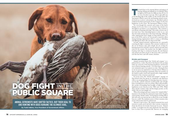 Second , animal-extremist organizations are constantly renewing the fight to insinuate their extreme worldview on the rest of America and , quite simply , the use of dogs for hunting doesn ’ t fit with their twisted outlook and what they want for the country . Put another way , the fight to protect hunting with dogs is continuous because the anti-hunters and animal extremists attack on this front with a particular zeal that has been , and will remain , relentless .