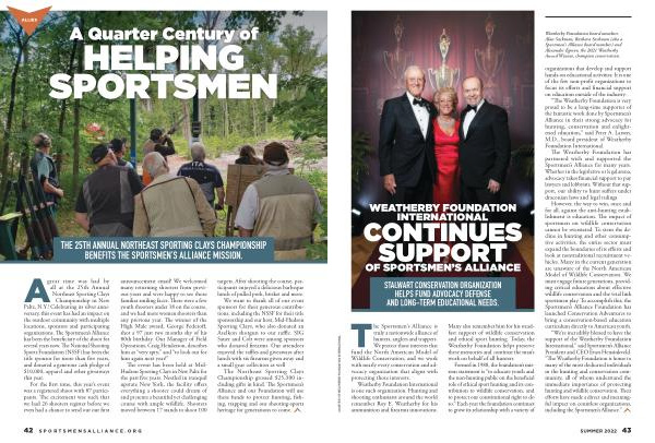 WEATHERBY FOUNDATION INTERNATIONAL CONTINUES SUPPORT OF SPORTSMEN ’ S ALLIANCE