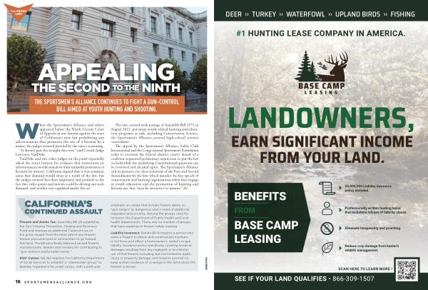 The appeal by the Sportsmen ’ s Alliance , Safari Club International and the Congressional Sportsmen ’ s Foundation seeks to overturn the federal district court ’ s denial of a coalition-requested preliminary injunction to put the law on hold while the underlying Constitutional questions can be reviewed and decided upon . The Sportsmen ’ s Alliance and its partners cite clear violations of the First and Second Amendments by the law , which muzzles the free speech of conservation and hunting organizations when they engage in youth education and the promotion of hunting and firearm use that “ may be attractive to minors .”