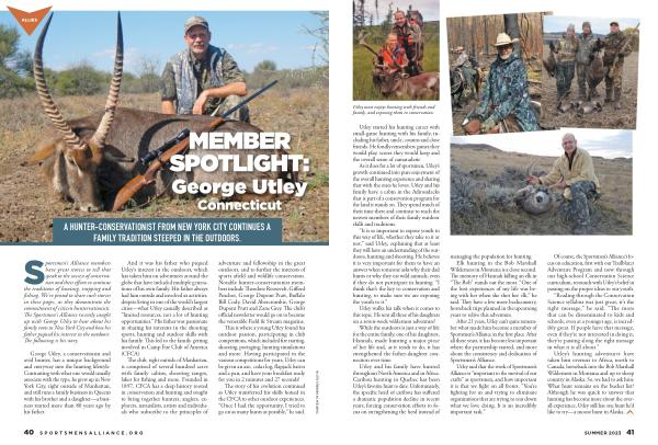 Sportsmen ’ s Alliance members have great stories to tell that speak to the success of conservation and their efforts to continue the traditions of hunting , trapping and fishing . We ’ re proud to share such stories in these pages , as they demonstrate the commitment of citizen huntervationists . The Sportsmen ’ s Alliance recently caught up with George Utley to hear about his family roots in New York City and how his father piqued his interest in the outdoors . The following is his story . George Utley , a conservationist and avid hunter , has a unique background and entryway into the hunting lifestyle . Contrasting with what one would usually associate with the type , he grew up in New York City , right outside of Manhattan , and still runs a family business in Queens with his brother and a daughter — a business started more than 80 years ago by his father .