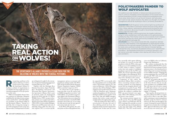 Cognizant of this reality , the Sportsmen ’ s Alliance filed a second petition concerning remnant wolves to develop a pathway out of the litigation morass that has strangled effective wolf management for nearly 20 years . With remnant wolves addressed with the second petition , the coalition is confident that FWS can move forward , once again , with a WGL DPS delisting action that will survive court scrutiny .