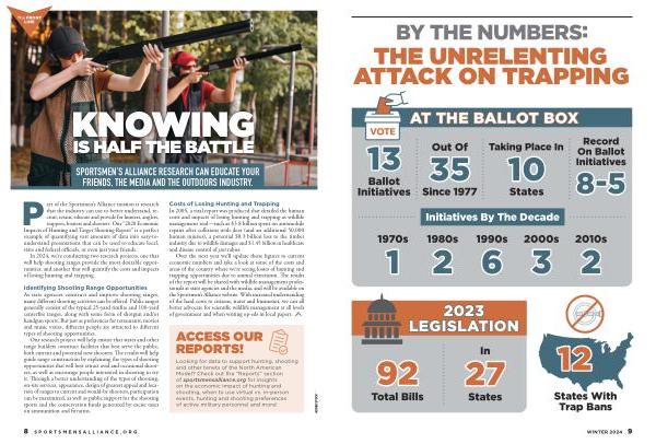 WINTER 2024 9 AT THE BALLOT BOX AT THE BALLOT BOX 2023 2023 LEGISLATION LEGISLATION 92 92 Total Bills In In 27 27 States 12 12 States With Trap Bans 13 13 Taking Place In 10 10 Out Of 35 35 Since 1977 States States Ballot Ballot Initiatives Initiatives Record On Ballot On Ballot Initiatives Initiatives 8-5 1 1970s 2 2010s 2 1980s 6 1990s 3 2000s Initiatives By The Decade BY THE NUMBERS : THE UNRELENTING ATTACK ON TRAPPING