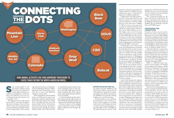 The Humane Society of the United States ( HSUS ) runs deep throughout this policy corruption , from every legislature in the country and parliaments overseas to funding court battles and ballot-box-biology warfare . Other national organizations join them , including the Center for Biological Diversity ( CBD ), Mountain Lion Foundation , Sierra Club , Project Coyote and WildEarth Guardians , among many .