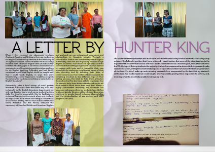 The classroom that my students and I have been able to create has been possible due to the same temporary nature of the Fulbright position that I once critiqued. I have freedom that none of the other teachers in the department have with their classes and that I doubt I will ever have as a teacher again, even after I return to the U.S. My hope is that my students, the majority of whom have expressed an interest in being, or are already, seasoned teachers, will fight to create similar spaces of exploration in their own lives or for the next generation of students. For this, I wake up each morning miserably hot, exasperated by the fact that my student’s enthusiasm has made maximum word lengths and reasonable grading times impossible to enforce, and, most importantly, absolutely unable to believe my luck.