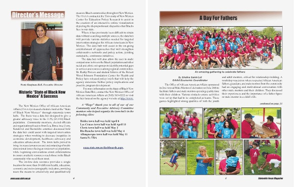 For more information on the State of Black New Mexico Data Hub, contact the New Mexico Office of African American Affairs at( 505) 383-6222 or visit the hub housed on the agency website at http:// www.