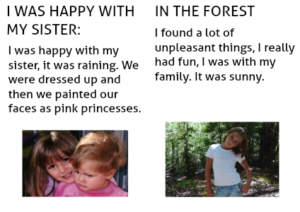 I was happy with my sister, it was raining. We were dressed up and then we painted our faces as pink princesses.