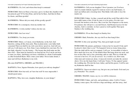 KATHERINA. Where did you study all this goodly speech? PETRUCHIO. It is extempore, from my mother-wit. KATHERINA. A witty mother! witless else her son. PETRUCHIO. Am I not wise? KATHERINA. Yes; keep you warm.