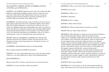 BAPTISTA. [ To TRANIO.] Signior Lucentio, this is the ' pointed day That Katherine and Petruchio should be married, And yet we hear not of our son-in-law. What will be said? What mockery will it be To want the bridegroom when the priest attends To speak the ceremonial rites of marriage! What says Lucentio to this shame of ours?