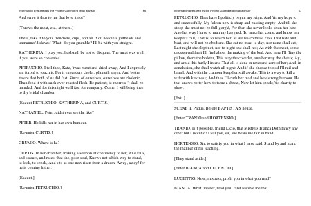 [ Exeunt PETRUCHIO, KATHERINA, and CURTIS.] NATHANIEL. Peter, didst ever see the like? PETER. He kills her in her own humour. [ Re-enter CURTIS.] GRUMIO. Where is he?