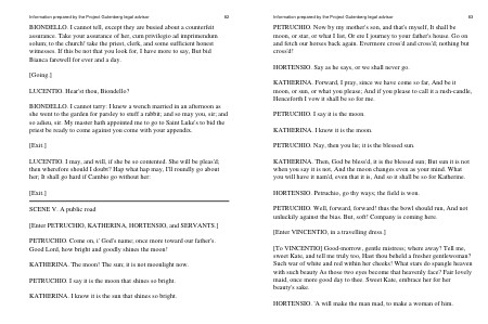 KATHERINA. The moon! The sun; it is not moonlight now. PETRUCHIO. I say it is the moon that shines so bright. KATHERINA. I know it is the sun that shines so bright.