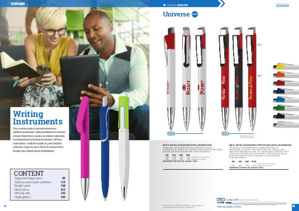 Toppointin suunnittelemassa kuulakärkikynässä on metallikärki ja-pidike. Valmistettu Saksassa. Kirkkaat värit yhdistyvät läpinäkyviin osiin. Iso, täytettävä mustesäiliö riittää 4,5 km pituisen tekstin kirjoittamiseen. Valittavana erivärisiä kirjoitusmusteita( sininen, punainen, musta ja vihreä). Koko: Ø12x146mm.