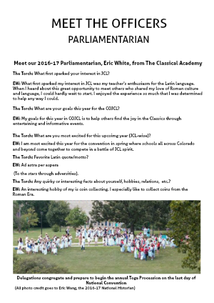 Meet our 2016-17 Parliamentarian, Eric White, from The Classical Academy