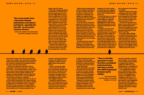 “ The responses also show broad support for a consolidated tape but there is still little agreement on what form it should take , more than a decade after MiFID fragmented European equity trading ,” Rosenblatt ’ s Puaar added .