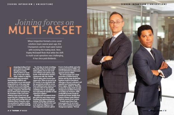 When Unigestion formed a cross-asset solutions team several years ago , Eric Champenois and his team were tasked with evolving the trading desk . Here , Hayley McDowell finds that while the shift to multi-asset operations was challenging , it has since paid dividends .