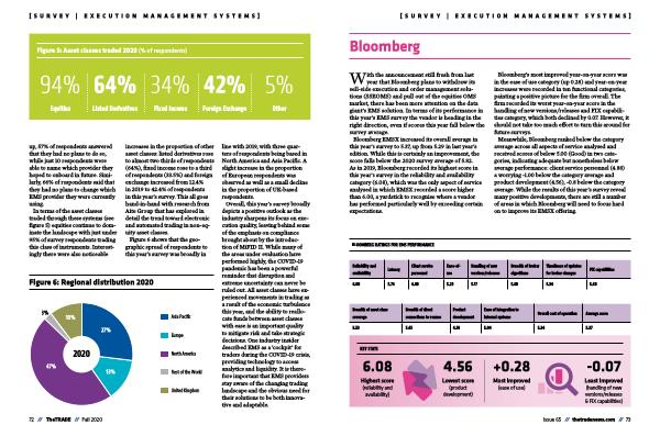Overall , this year ’ s survey broadly depicts a positive outlook as the industry sharpens its focus on execution quality , leaving behind some of the emphasis on compliance brought about by the introduction of MiFID II . While many of the areas under evaluation have performed highly , the COVID-19 pandemic has been a powerful reminder that disruption and extreme uncertainty can never be ruled out . All asset classes have experienced movements in trading as a result of the economic turbulence this year , and the ability to reallocate funds between asset classes with ease is an important quality to mitigate risk and take strategic decisions . One industry insider described EMS as a ‘ cockpit ’ for traders during the COVID-19 crisis , providing technology to access analytics and liquidity . It is therefore important that EMS providers stay aware of the changing trading landscape and the obvious need for their solutions to be both innovative and adaptable .