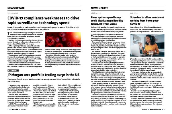 With the increased market volatility at the height of the coronavirus pandemic in March , JP Morgan added that investors saw portfolio trading as way to guarantee instant execution .