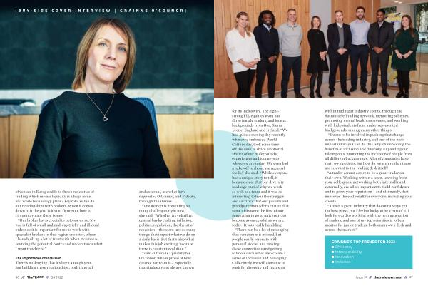 for its inclusivity . The eightstrong FIL equities team has three female traders , and boasts backgrounds from Goa , Sierra Leone , England and Ireland . “ We had quite a moving day recently where we embraced World Culture day , took some time off the desk to share emotional stories of our backgrounds , experiences and journeys to where we are today . We even had a bake-off to showcase regional foods ,” she said . “ While everyone had a unique story to tell , it became clear that our diversity is a large part of why we work so well as a team and it was so interesting to hear the struggle and sacrifice that our parents and grandparents made to ensure that some of us were the first of our generation to go to university , to become as successful as we are today . It was really humbling .
