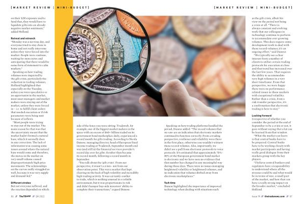 as the gilt crisis , albeit his view on the period not being a crisis at all . “ There is always constant and evolving work that our colleagues in technology continue to perform to accommodate ever growing volumes . This does require some development work to deal with these record volumes ; it ’ s an ongoing effort ,” said Danese .