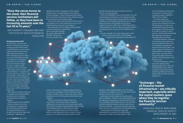 An ( in ) convenient truth ? As fruitful as a future in the cloud is claimed to be , wherein “ running markets fully in the cloud will usher in a new era for capital market infrastructure and market participants ,” as AWS ’ whitepaper puts it , there is an important argument that currently the environment in question is in actuality not yet developed enough in order to support cloud operations across the board .