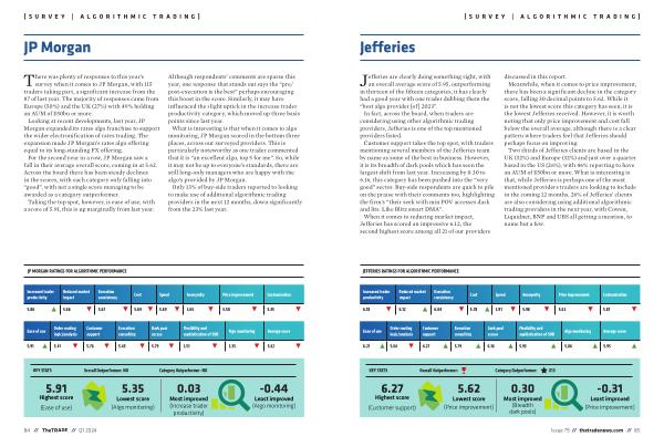JP MORGAN RATINGS FOR ALGORITHMIC PERFORMANCE
