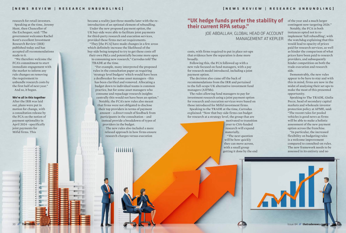 Speaking to the TRADE at the time, Carrodus explained:“ Now that buy-side firms can budget for research at a strategy level, the group that are motivated to transition over to CSA-funded research will expand materially.“ The next question will be how quickly they can move across, with a small group getting it done by the end of the year and a much larger contingent now targeting 2026.”