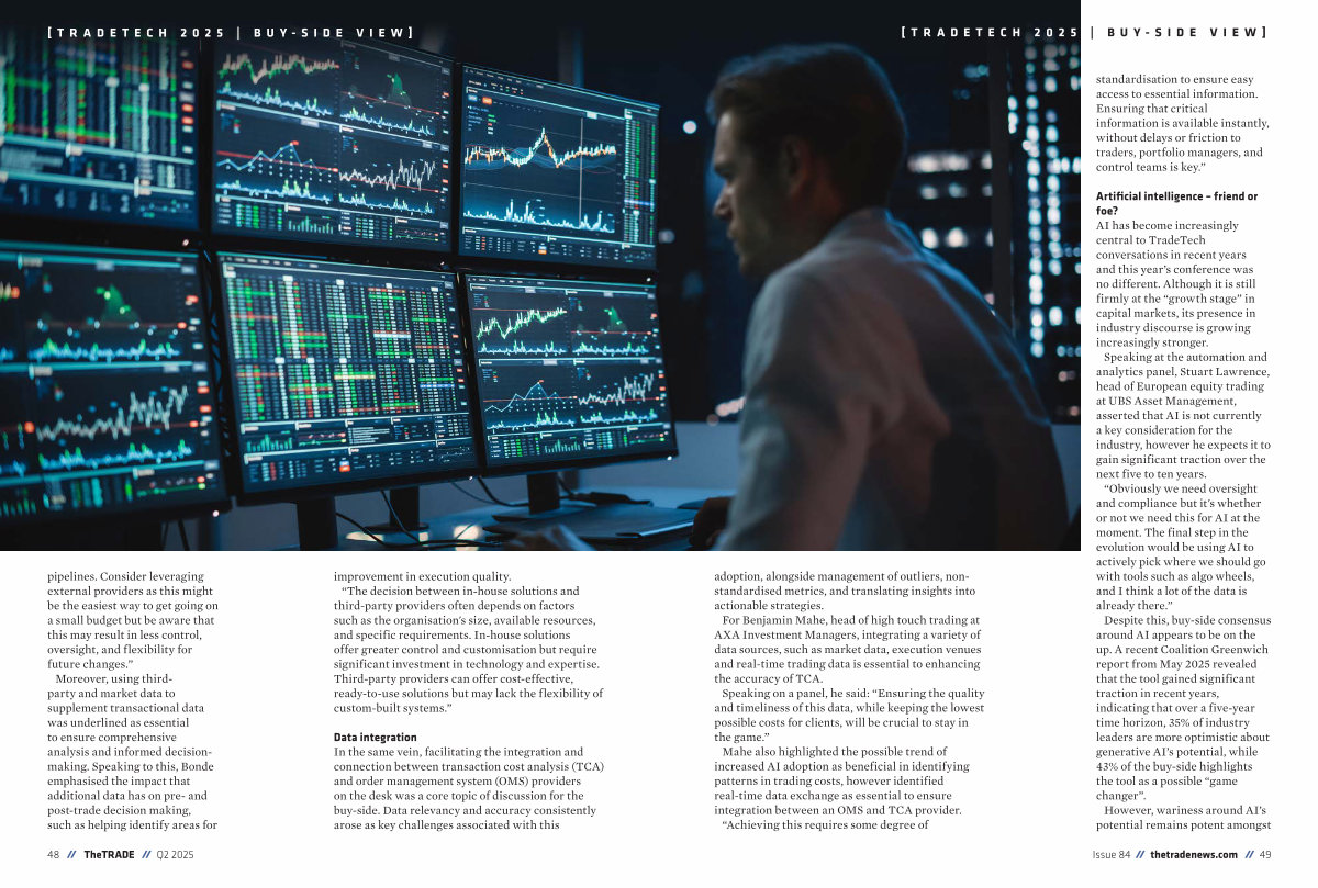 Artificial intelligence – friend or foe? AI has become increasingly central to TradeTech conversations in recent years and this year’ s conference was no different. Although it is still firmly at the“ growth stage” in capital markets, its presence in industry discourse is growing increasingly stronger.